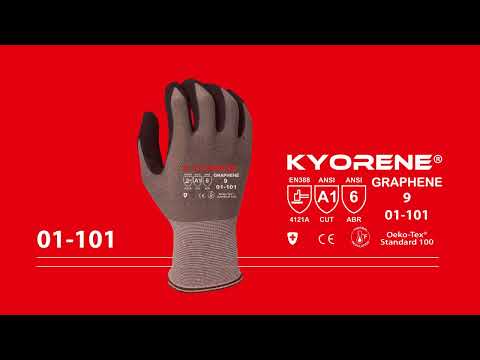 Gant Kyorene en jauge 18 avec revêtement HCT Microfoam. Bactériostatique, Neutralisant d’ odeurs, Régulateur thermique et Résistant aux UV. EN 388 4X43F, EN 407 X1XXXX, pouce-index renforcés et compatible aux écrans tactiles. Le gant résistant aux coupures Cut F/A9 le plus léger et le plus fin du marché, sans fibre de verre ni acier inoxydable.